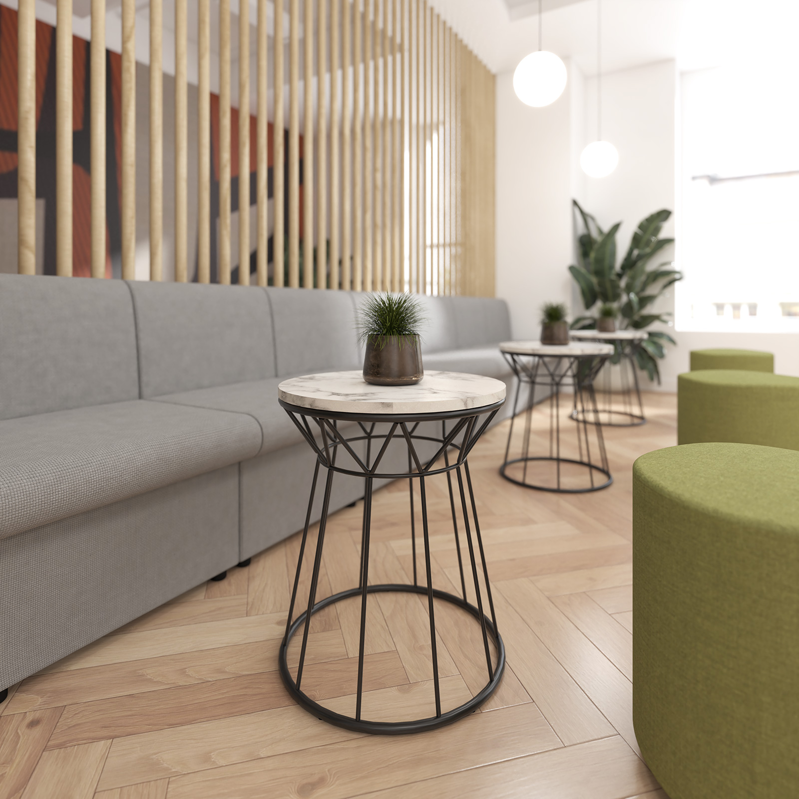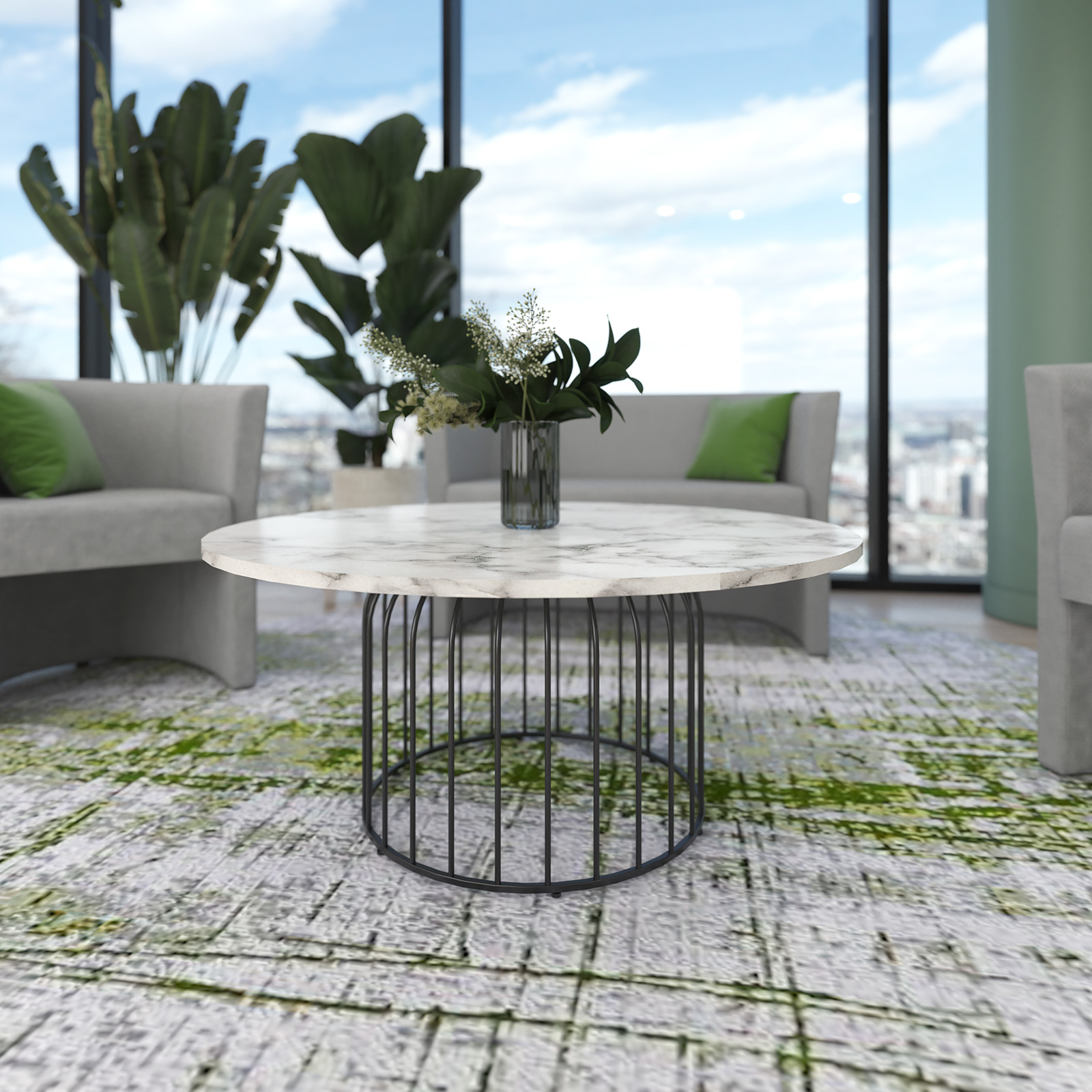 The Este coffee table is a modern black wire underframe supporting a marble effect MFC top.