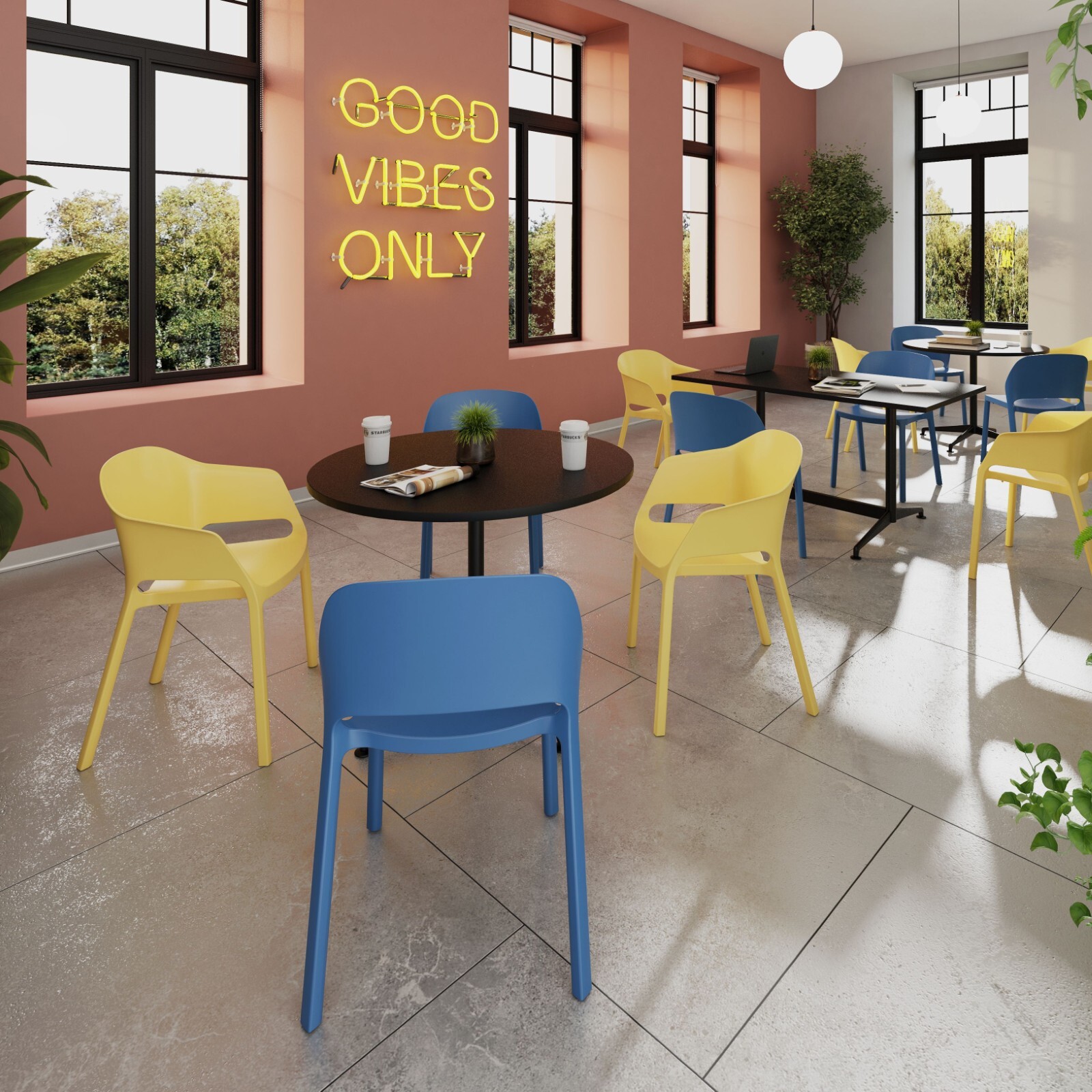 The Loft table range brings together style and function. The modern painted aluminium leg frame, combined with fresh top finishes, creates a balanced design that works beautifully in both meeting spaces and dining areas.