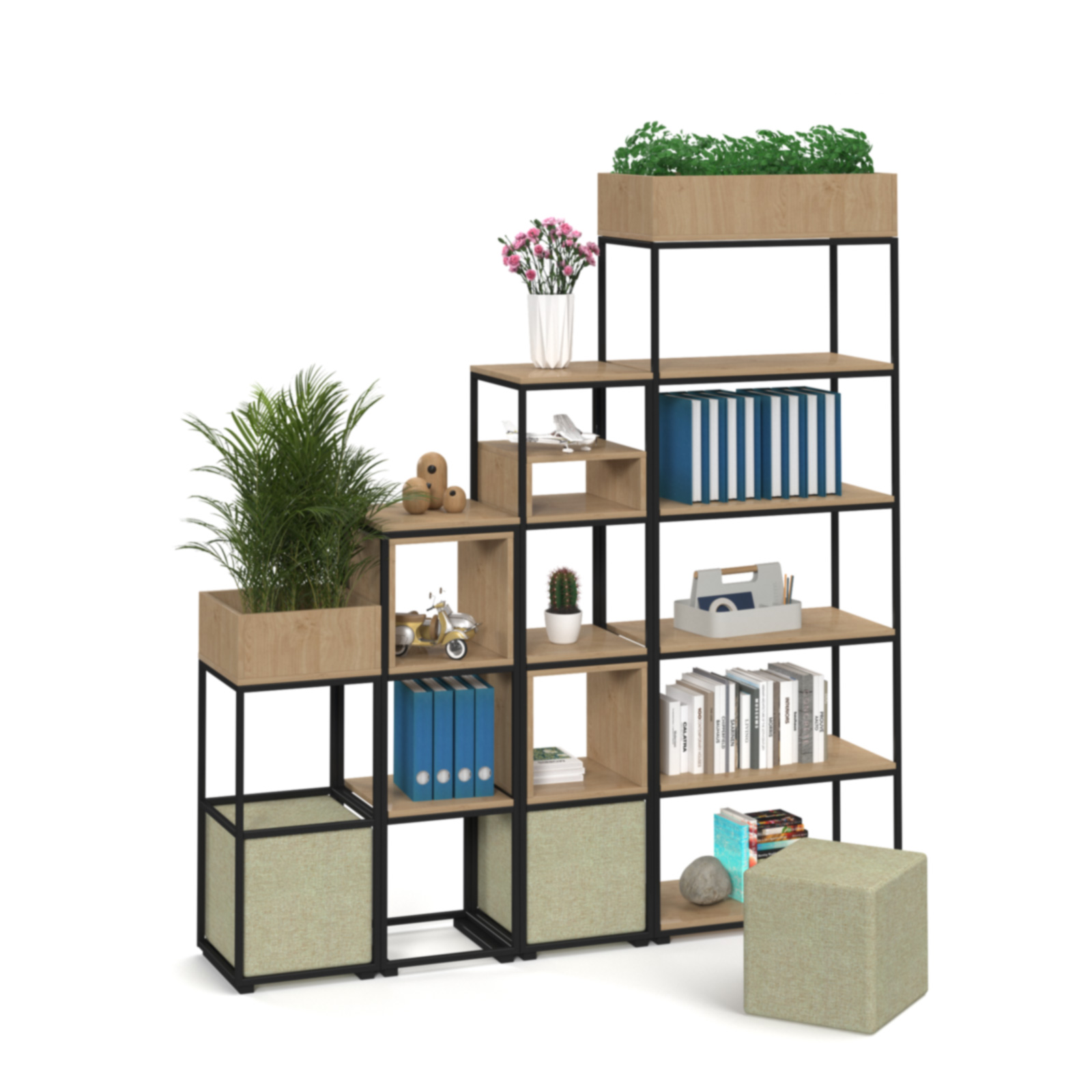 - Modular grid based shelving/storage system for adaptable, flexible spaces