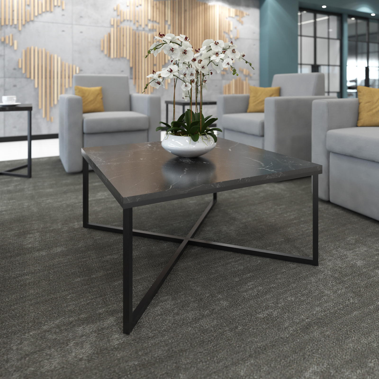 Siano is designed with cross section steel frame finished in matt black and a matching bespoke Louts MFC top offers a stylish solution to any reception and breakout area.