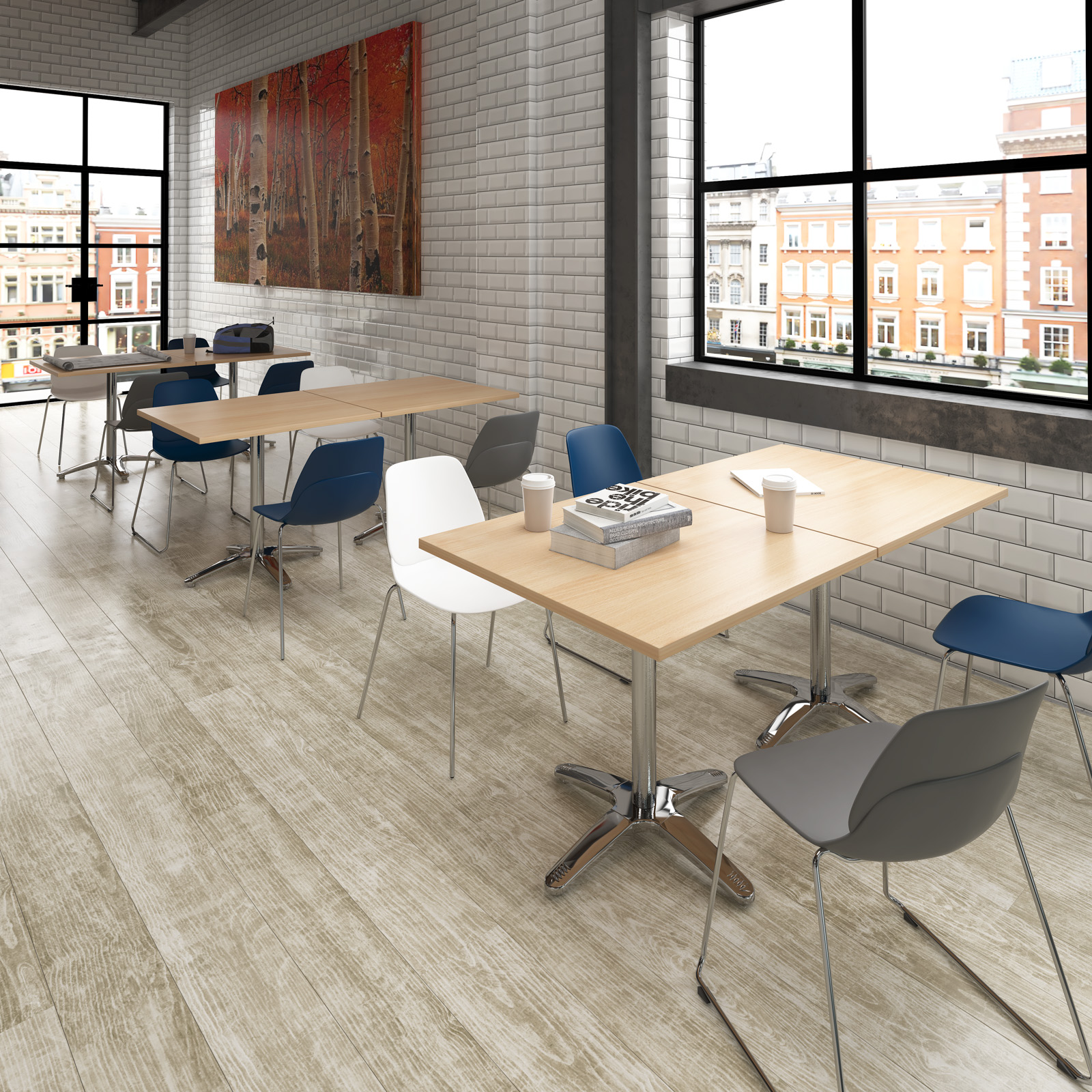 - Chrome sled and wooden leg option with interlocking detail for a contemporary look